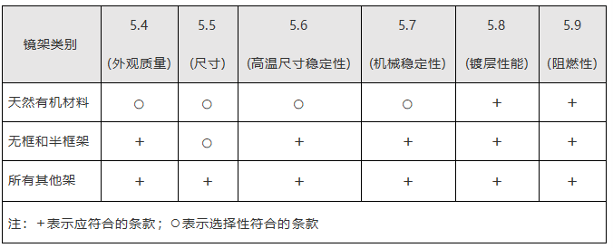 表1所有镜架需符合的标准条款